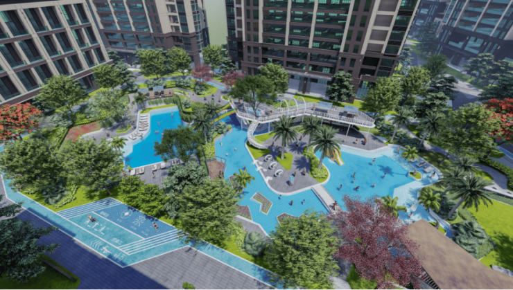 ③项目东西向享一二期内部大型水上乐园及中庭园林景观。