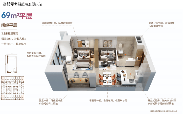 项目由1栋天际公寓及1栋地标住宅和裙楼商业组成。