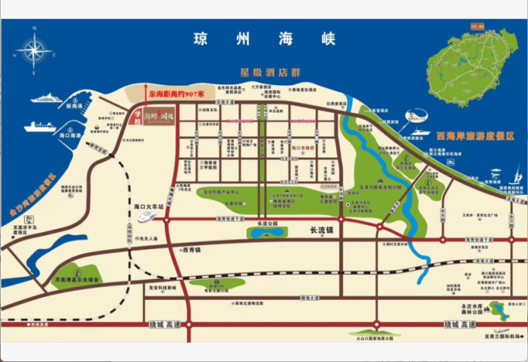 ?链接南北,近临滨海大道、海秀快速路粤海大道路口,畅快通达多个商圈。