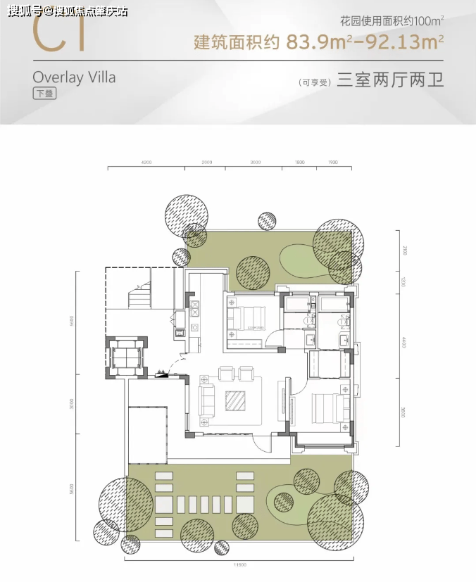 叠拼户型:提供建面约 80.94-92.13㎡的板式叠拼户型。