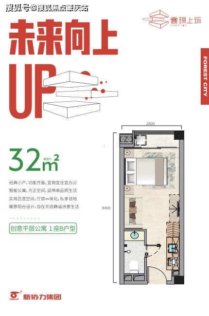 区别于市面上的商办(写字楼)产品,项目规划为“真公寓、有产权”的服务型公寓,涵括商业、居住、酒店、民宿等多种用途。