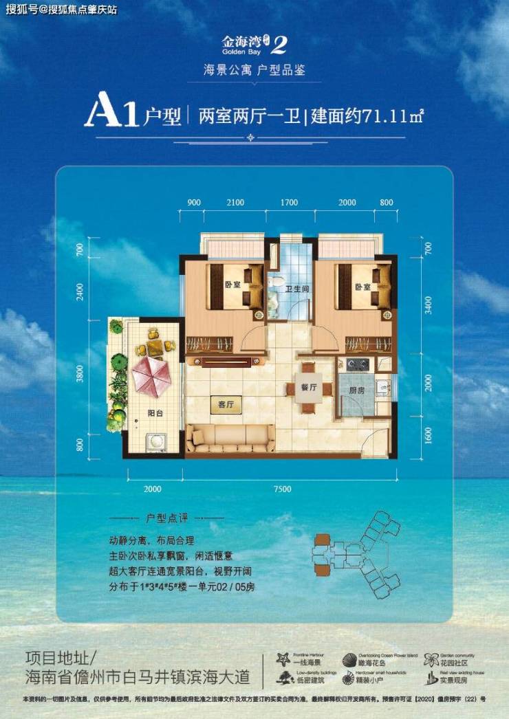 在海南限购政策前规划获批的低于100平米的稀缺小户型,设计精巧,明厨明卫,1.8米超宽大阳台,141米超宽楼间距。