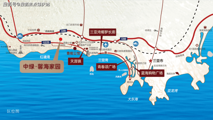 项目落址于红塘湾旅游度假区,毗邻红塘湾七横路,紧邻G225国道、G98环岛高速,依托国道、高速串联凤凰路、三亚湾路、迎宾路,可迅速抵达三亚核心商圈,为居者悦启一城繁华生活。