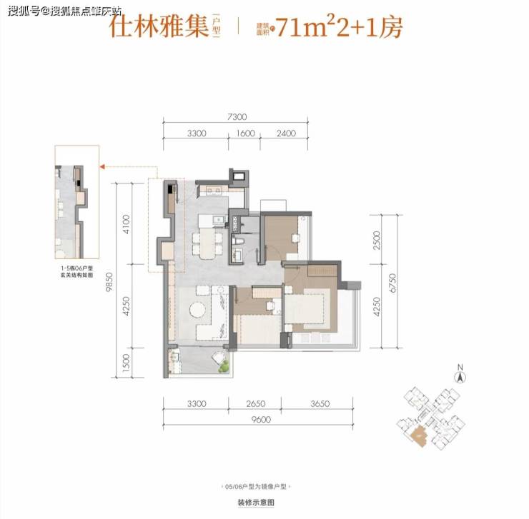 仕林雅集建面约71m²2+1房