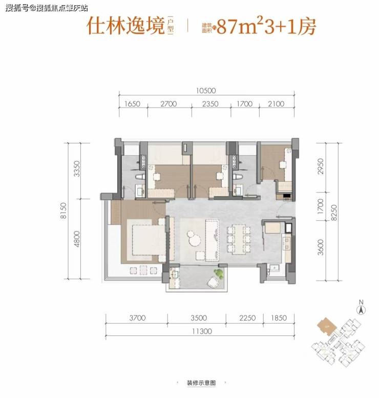 仕林逸境建面约87m²3+1房