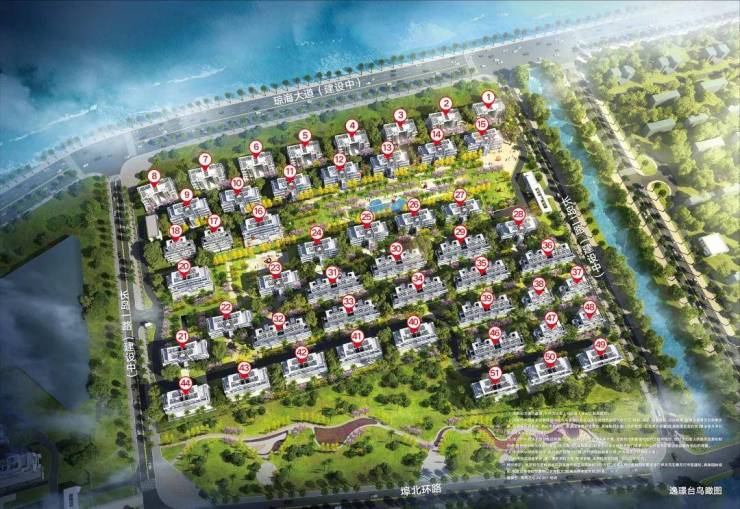 七色岛儿童公园、圣托里海湾公园、碧海银滩公园、拾贝公园(建设中)、约3km滨海休闲带,打造城市生态之岛,悠享惬意富氧大境。