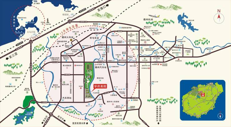 机场:儋州西部国际机场(规划中),位于梅花岭,距本项目直线距离约22.3km30分钟车程。