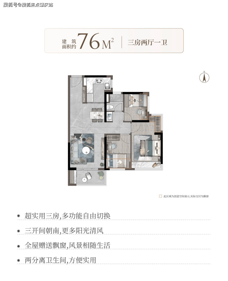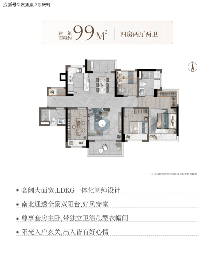 萃取地道岭南风韵,经典岭南审美简约呈现,传统造园手法与现代园林技术结合,首创新岭南主义风格;近9米架空层,保障通风凉爽舒适;南偏东/西33度角,取得最佳通风采光效果;点式阵列布局,将法线错开,最大化景观视野和楼距空间。