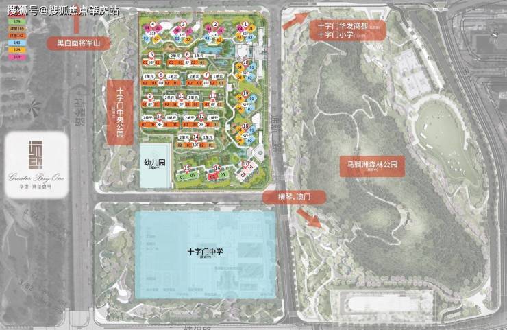 东侧马骝洲山山体公园,西侧体育公园,南边十字门中学,北边南湾大道,十字门小学
