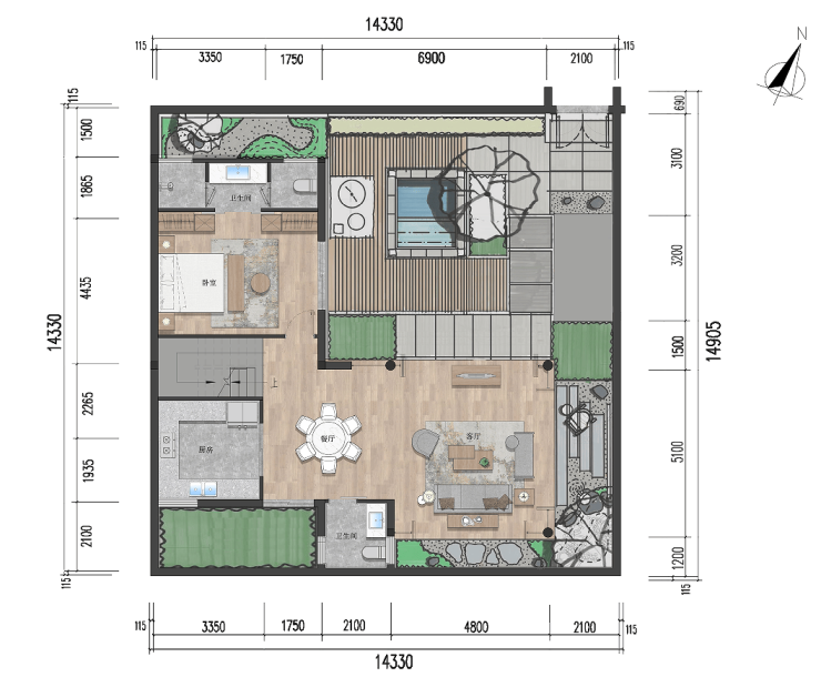 🌴【独栋小院:三室两厅四卫 建面约97㎡】