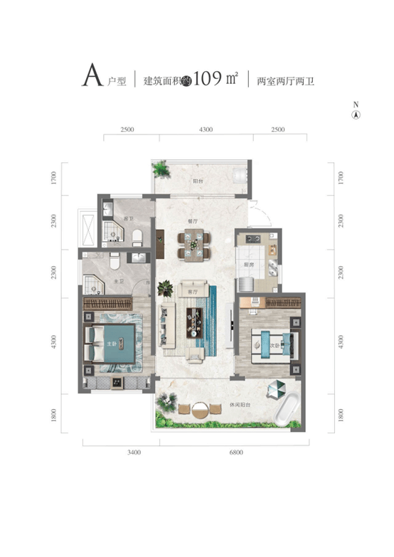 A 户型109㎡两室两厅两卫