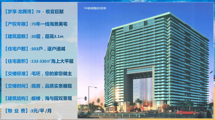梦享·龙腾湾,塑造海上府邸,铸就梦想人生。以一线海景资源、约12米宽海景大阳台为依托。精铸132-330㎡海上大平层,升级迭代海口湾区豪宅时代,成为海南自贸港封关运作稀贵海岸资产,全球火爆销售中。
