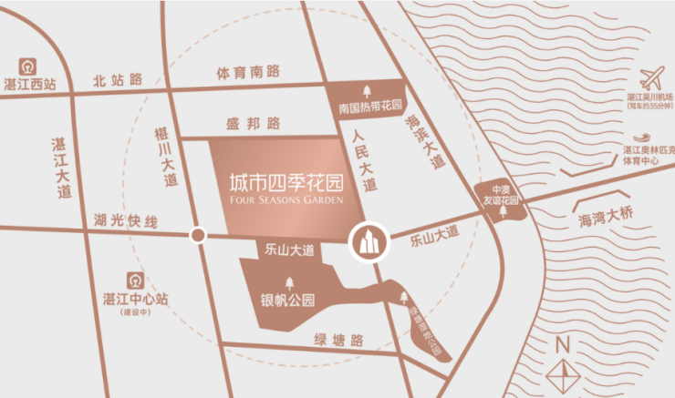 ❹ 北靠椹川大道、人民大道双主干道,便捷融通湛江主城区。