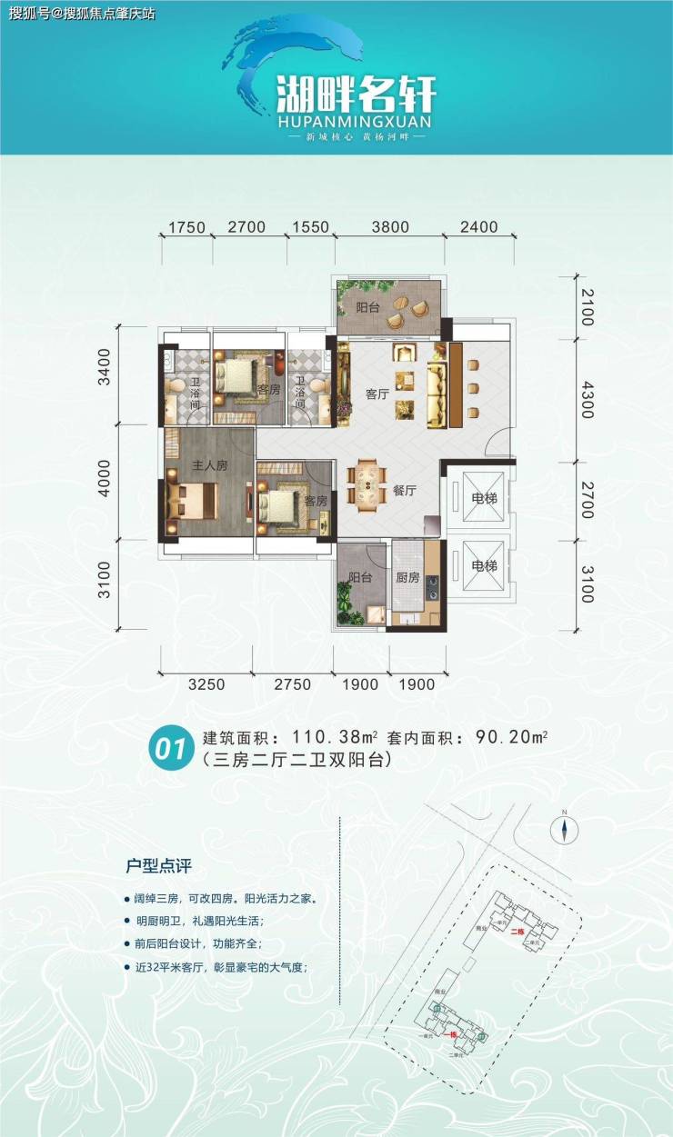 3. 在售产品:住宅采用品字结构,东北通透,朝西南