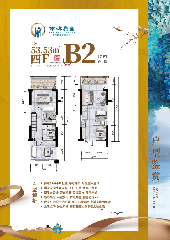 🏠 B2户型 LOFT 约53㎡ 四室两厅两卫