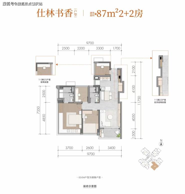 仕林书香建面约87m²2+2房