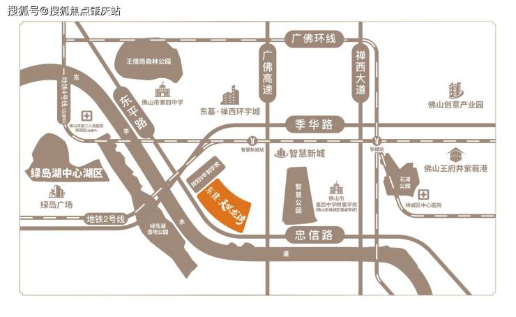 双地铁交汇+一站换乘广佛环线 :距2号线智慧新城站直线距离约500米,还有地铁4号线(在建中)、广佛环线(已运营),可迅达广佛。