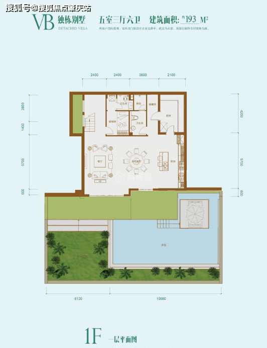 VB 户型:建筑面积 193㎡,五房三厅六卫,房间数量多,可满足大家庭或多客人的居住需求,室外空间大,适合家庭度假、朋友聚会等。