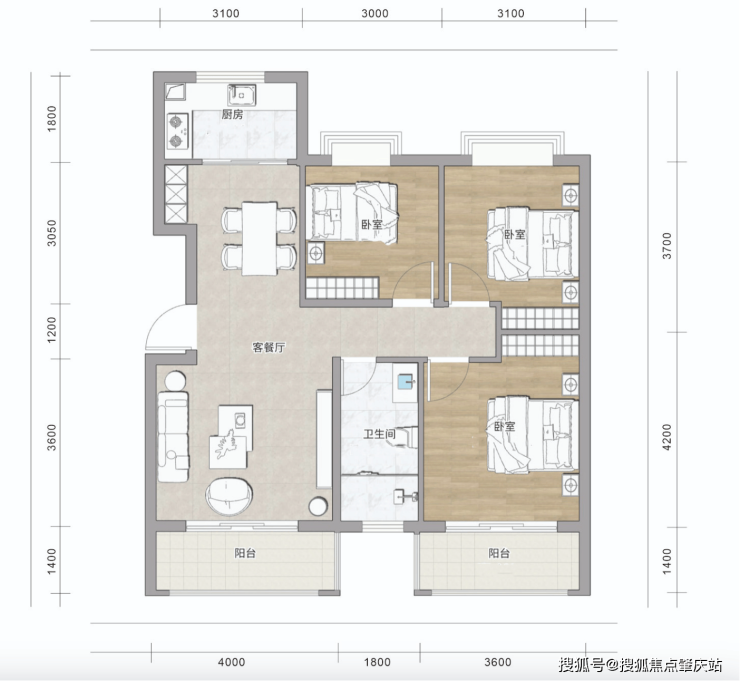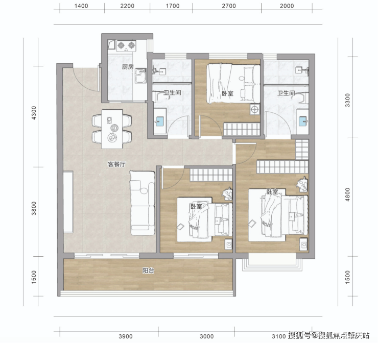 ◎舒适布局:客餐厨等动区,与卧室等静区分离,避免互相干扰