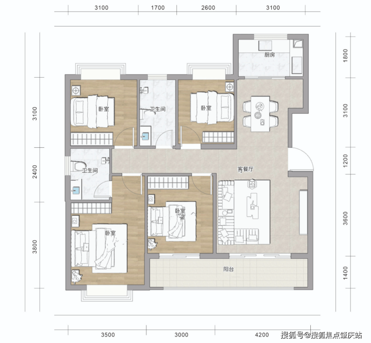◎私密有序:方正全明采光四室户型,空间合理分区,互不干扰