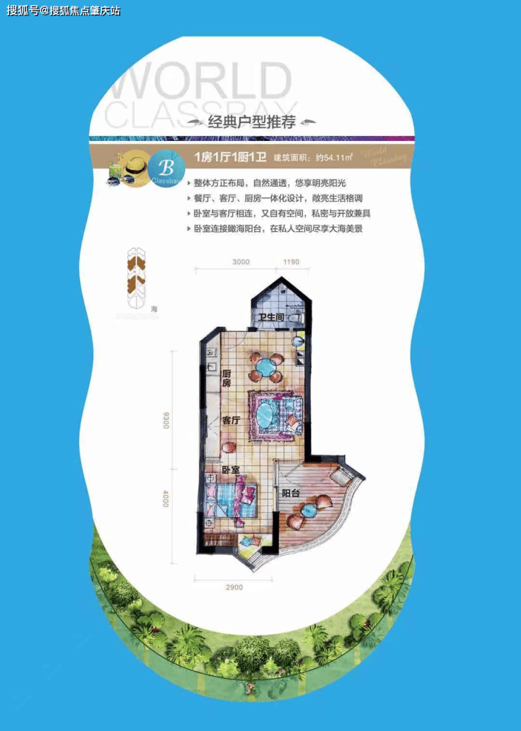 B户型,建筑面积约49~54㎡,1房1厅1厨1卫,欢迎品签