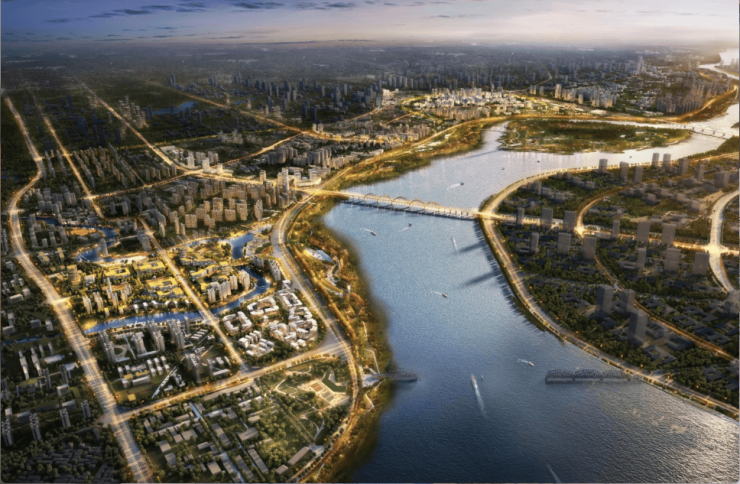 佳丰·京艺湾坐落新大洲大道与海榆大道交汇处,坐拥江东新区自贸港政策高地,兼享滨江新城宜居配套,拥揽南渡江一线生态景观,以"政策+区位+生态"三重优势,成就自贸港芯的稀缺滨水人居。