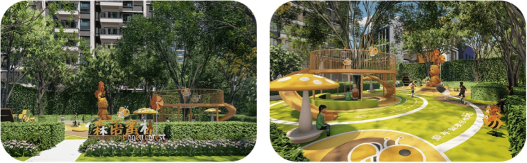 设置5大儿童乐园、4大架空层全龄共享空间、3大功能园林空间,丰富业主生活