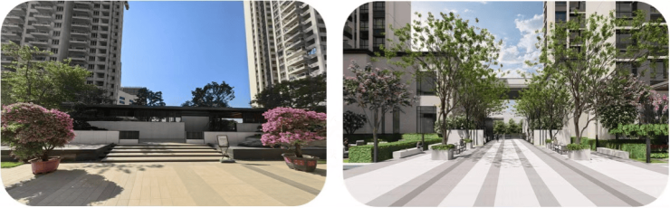 园林呈“两轴五进”景观空间,种植多种名贵乔木,让业主感受归家的舒适与惬意