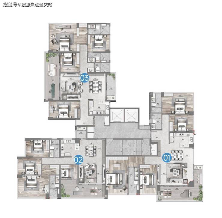 03户型 建筑面积约172㎡灵活尺度大平层客餐厅对流,客厅无剪力墙可拓展达到70㎡墅级L型迎客玄关,尊贵入户礼遇东平河最美「江+岛」景观餐厅