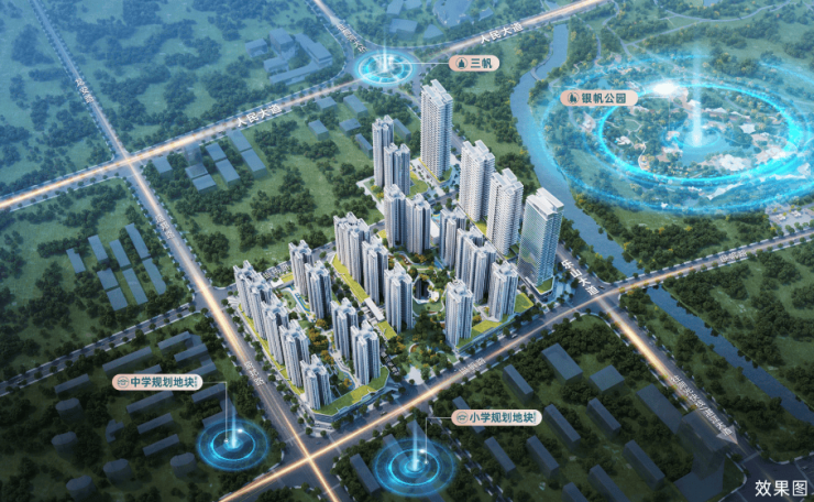 ☆项目毗邻580亩银帆公园,同步配建约6500m²市政公园,外拥两大公园,成就全城罕有的生态宜居高度。