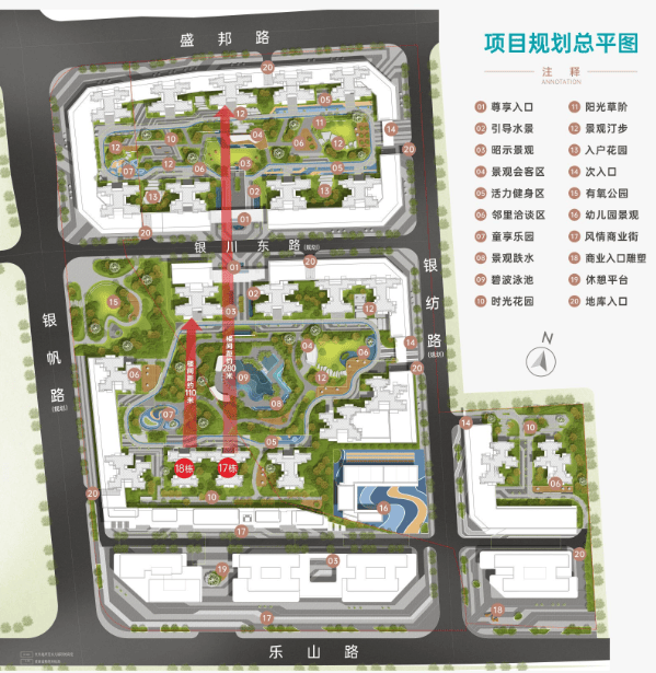 ① 整体规划:22 栋住宅+商业+幼儿园+生鲜市场等
