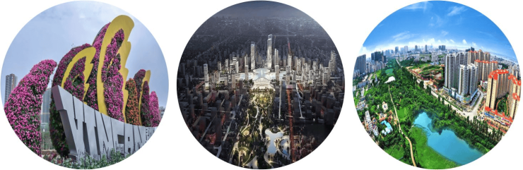 财富汇、云海一号(规划建设中)、万豪酒店(规划引进)、君豪酒店、皇冠假日酒店地标林立