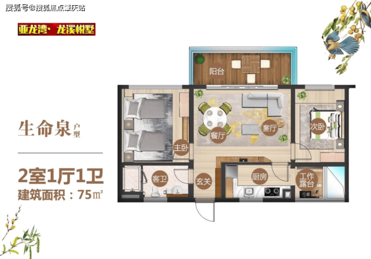 户型:洋房公寓有 75-84㎡两房一卫,95㎡两房两卫,还有 G1 户型鹭台洋房两房两厅两卫,建筑面积为 110㎡;G2 户型鹭台洋房三房两厅两卫,建筑面积为 117㎡;VA 户型独栋别墅四房三厅三卫,建筑面积 145㎡;VB 户型独栋别墅五房三厅六卫,建筑面积 193㎡。