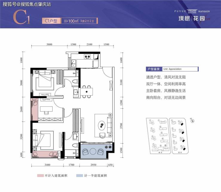 1. 方正三居雅室,功能分区明确。无敌楼间距,全程无遮挡。
