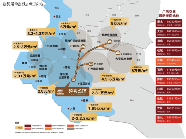 【价格洼地】:1/3番禺万博中心价,周边地价破1.8w/㎡,楼面价买现楼!项目去番禺仅约30分钟,售价却为万博中心1/3,祖庙1/2,千灯湖1/3,处于价格洼地,距离直径5公里地块楼面地价已达1.88万/㎡,片区新房均价2.4万/㎡,项目距离北滘新城、佛山新城5km,车程约20分钟,价差80-100万,未来溢价不言而喻。