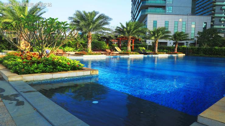 园林景观:有约 300 米东南亚风情中轴园林,串联双泳池和四大温泉泡池,还有 1500 米以上的环形路,周边有多层灌木和乔林。