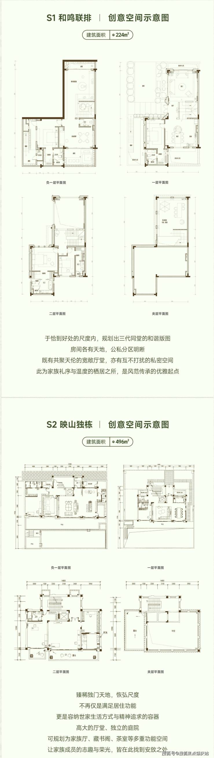【在售户型】:建面约224㎡联排/496㎡独栋