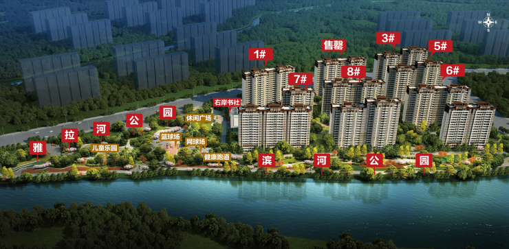 滨河公园:沿雅拉河设置,融健身、休闲活动于一体,设置有健身活动广场、复合健身空间、户外剧场、休闲散步道及人工拦水叠水景观,为业主户外健身休闲好去处。