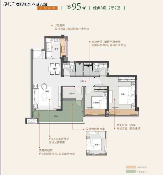 户型一【95㎡经典2+1房2厅2卫】