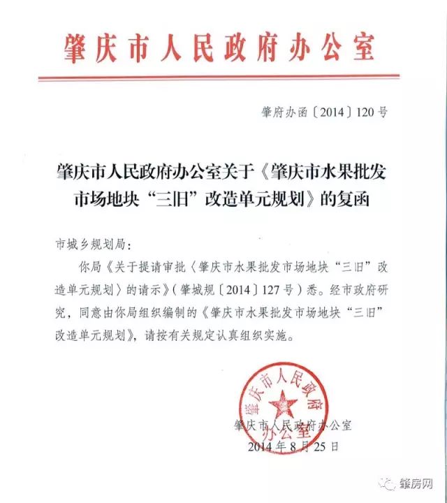 早在2014年8月,肇庆市人民政府便向市城乡规划局发批复函,同意《肇庆市水果批发市场地块“三旧”改造单元规划》,市场搬迁提上议程。