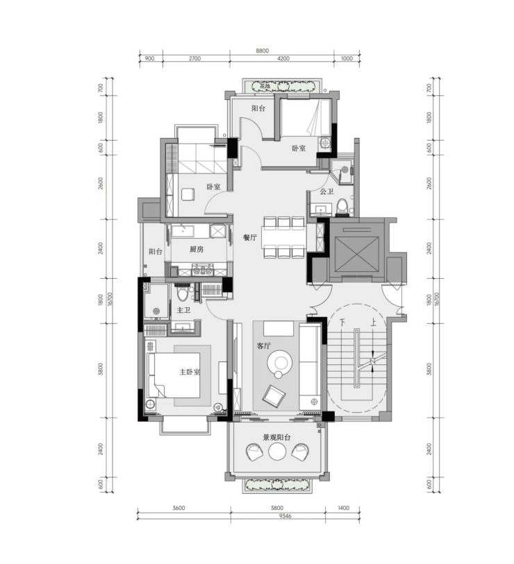 朗阔客厅衔接观景阳台,阳光清风常伴左右