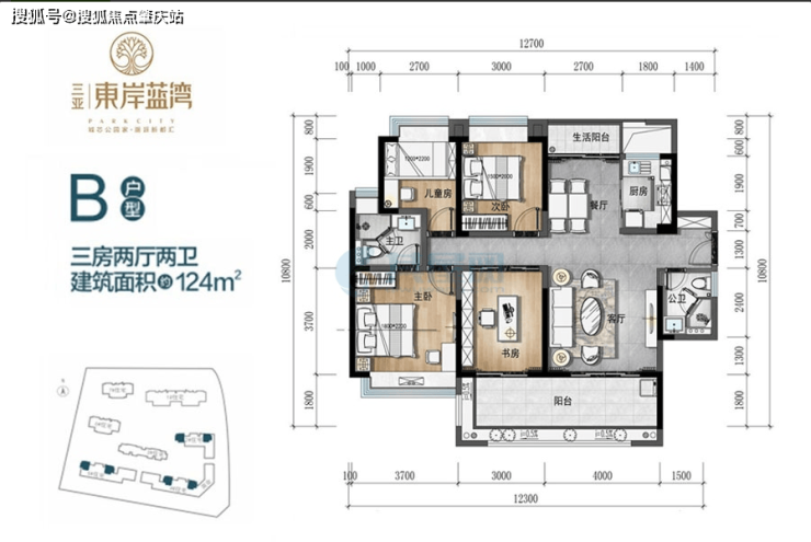 B户型:124㎡ 创享3+1房