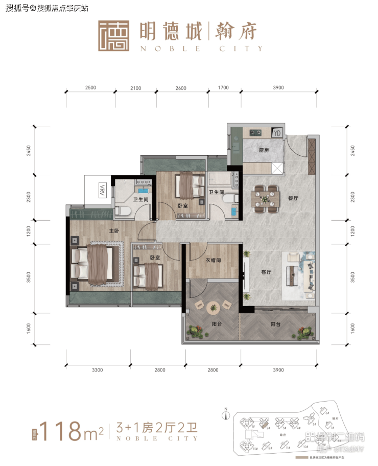 明德城总建面超100万㎡,由六个组团组成,集高端住宅、商务、商业、教育、休闲、生态等城市功能模块于一体的大型综合体项目。