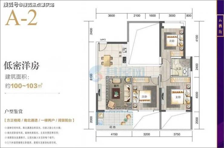 洋房A-2户型-建面约100.00㎡-3房2厅1厨2卫