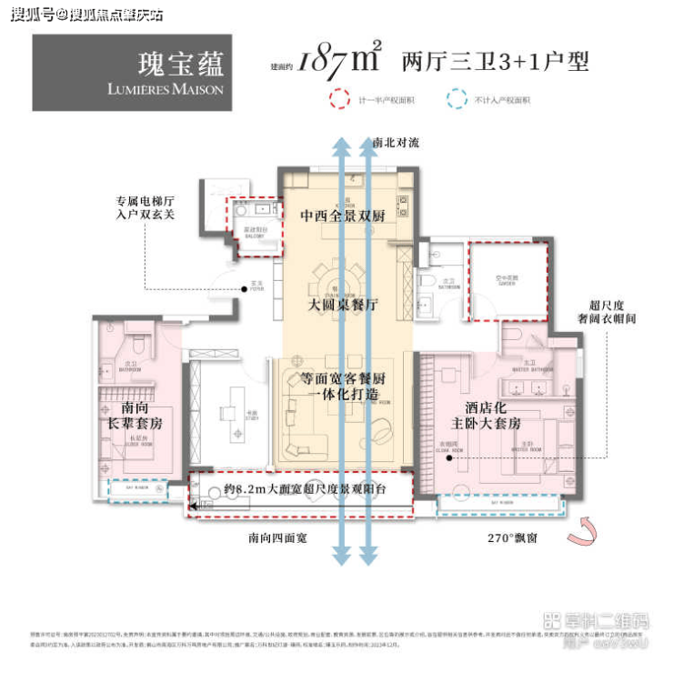 四开间朝南,超5米进深南向景观衣帽间高配主卧套房