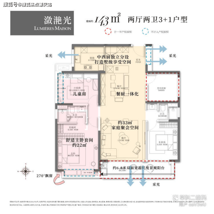 7栋两梯三户:02.03单位143方,01单位165方(主推)