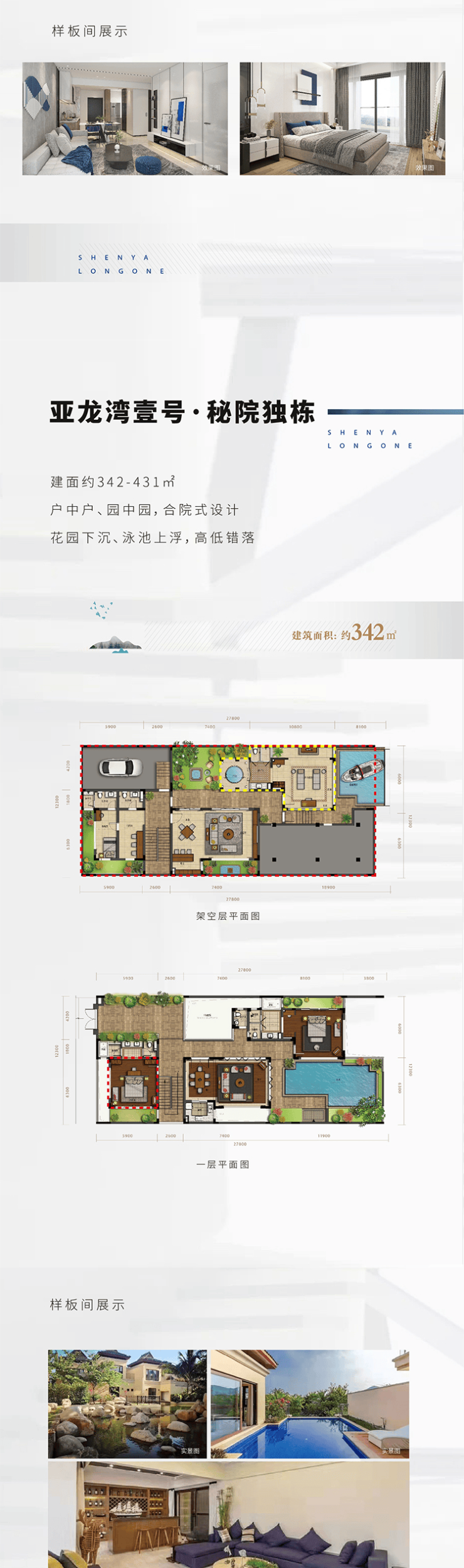 设计理念独特:采用园中园、院中院、户中户设计理念,花园下沉,泳池上浮,高低错落,超大地下面积赠送,高得房率。