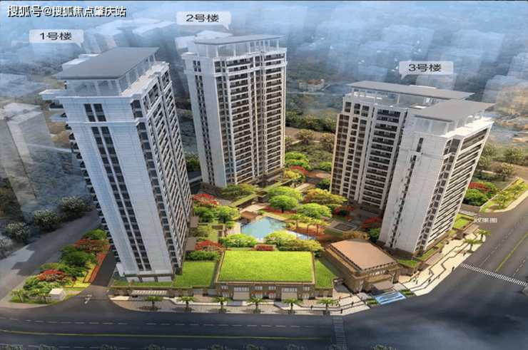 建筑设计:由三栋板式高层住宅及相关配套物业、临街低层商业环绕组成,内部为中央景观花园及泳池。采用外连廊式设计,带来更多通风、采光及景观视野,同时也提升了建筑的整体美观度。