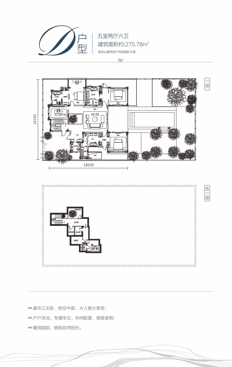 D户型:五室两厅六卫 / 建面约275㎡