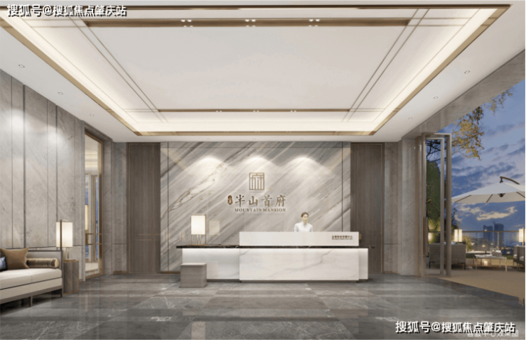 以“山”为门,提取新中式的优雅与从容,宽,则大大方方,高,则堂堂正正,是一种境界与智慧。用简单的线条和体块,展示正气大方的自我形象,构筑提振精神的强大中式气场。以100余米沉稳而有气势的临街展示界面,大门与景观墙一体化设计,传递“出可入世,入则隐心”的人文艺术气韵。